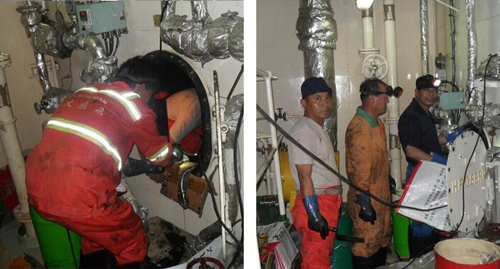 安全第一,以人为本,节约资源,提高效率。瑞文公司拥有专业的船舶清洗团队,拥有规范的安全操作流程,并配备各种规格的防爆油泵、高压清洗机、防爆通风机和防爆对讲机等油舱专业清洗工具,可为船舶清洗各种油柜达到油舱测试防爆等相关标准。